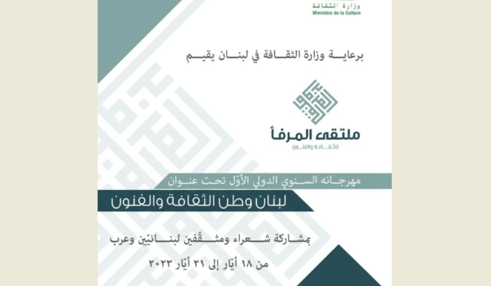 ينظم «ملتقى المرفأ للثقافة والفنون»، برعاية وزارة الثقافة مهرجانه السنوي الدولي تحت عنوان «لبنان وطن الثقافة والفنون» من 18 الى 21 أيار الحالي، بمشاركة شعراء ومثقفين لبنانيين وعرب.