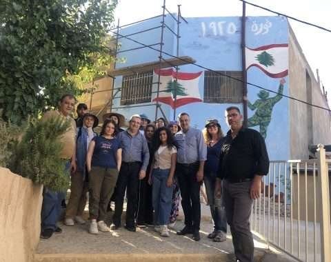 طلاب كلية الفنون الجميلة والعمارة (1) ينفذون جدارية في قلعة راشيا