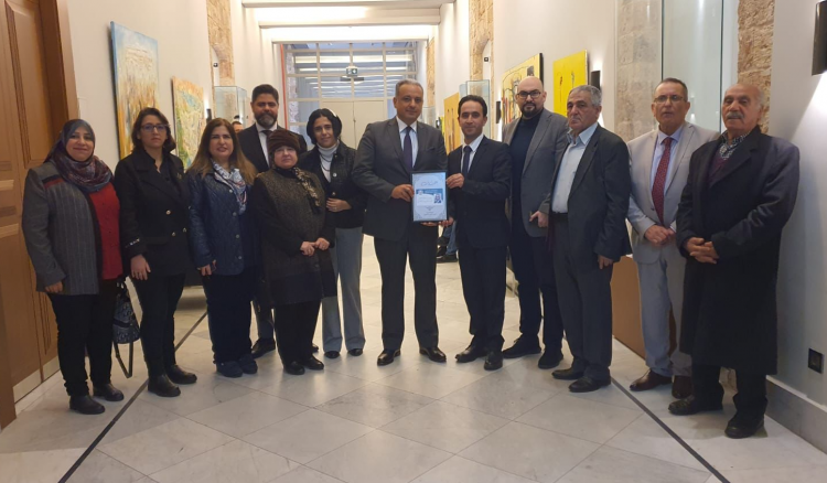 ضم الوفد الأمين العام الدكتور أحمد نزال ونائبة الأمين العام الأديبة ميراي شحادة وأعضاء الهيئة الإدارية: الأستاذ بسام ضو، الأستاذ يامن صعب، الدكتور رزق الله قسطنطين، الدكتورة وفاء الأيوبي، الدكتورة درية فرحات، الأستاذة أمل ناصر، الدكتور طوني مطر، الأستاذ رامز الدقدوقي والأستاذة ليندا نصار.