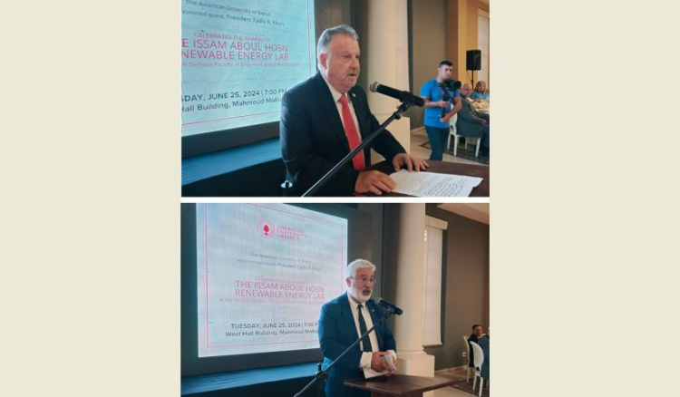 أطلقت الجامعة الأميركية في بيروت إسم المهندس عصام أبو الحسن على مختبر الطاقة المتجددة في كلية مارون سمعان للهندسة، في إطار تعزيز البحث العلمي والدراسات الأكاديمية، ولا سيما في مجال الطاقة المتجددة، وذلك في احتفال أقيم في مبنى وست هول – قاعة محمود ملحس، برعاية رئيس الجامعة الدكتور فضلو خوري وحضور النائب هادي أبو الحسن وفاعليات.