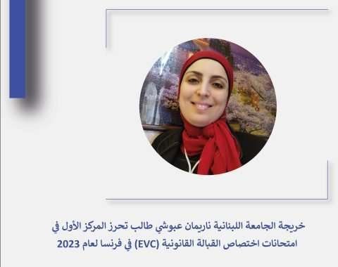 خريجة الجامعة اللبنانية ناريمان عبوشي طالب تحرز المركز الأول في إمتحانات إختصاص القبالة القانونية (EVC) في فرنسا لعام 2023