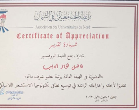رابطة جامعيي الشمال منحت البروفسور فاضل أديب عضوية هيئتها العامة برتبة عضو شرف دائم