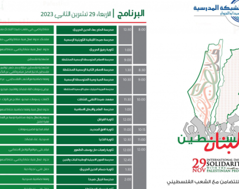 الشبكة المدرسية لصيدا والجوار أعلنت برنامج أنشطتها في «اليوم العالمي للتضامن مع الشعب الفلسطيني»