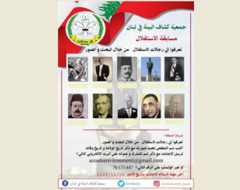 جمعية كشاف البيئة أطلقت مسابقتها السنوية لطلاب المدارس لمناسبة عيد الإستقلال