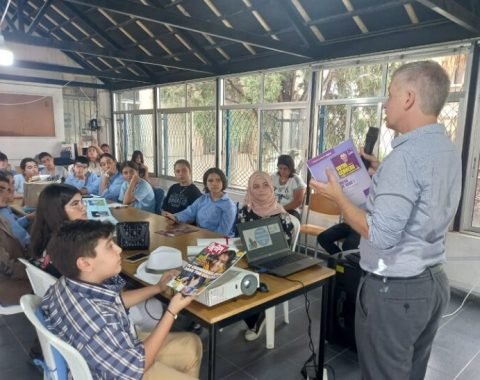 طلاب ثانوية عمشيت يلتقون الكاتب الفرنسي دافيد غروازون