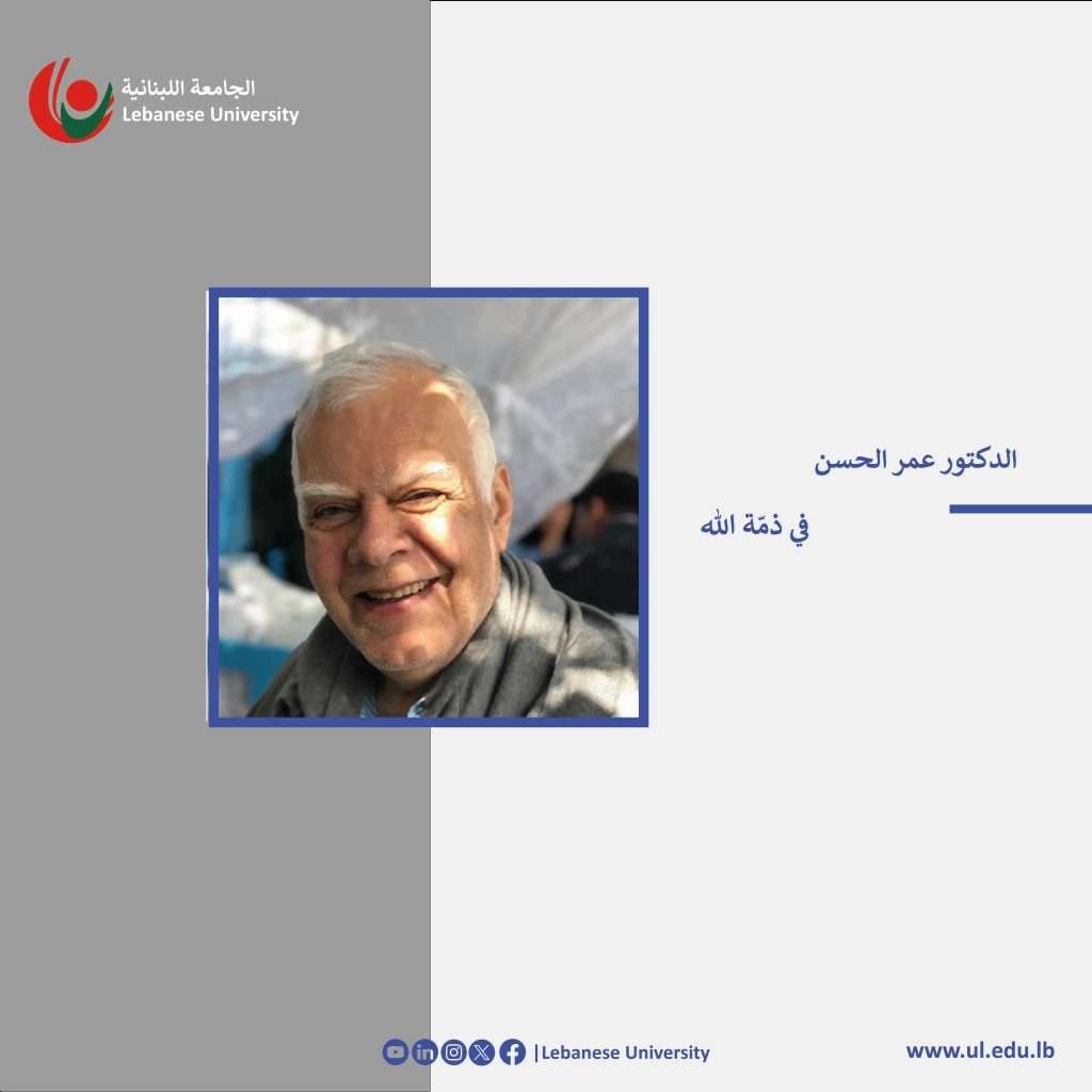 تنعى رئاسة الجامعة اللبنانية وعمادة كلية التربية الدكتور عمر حسني الحسن/أستاذ متقاعد ومدير سابق لكلية التربية – الفرع الأول.