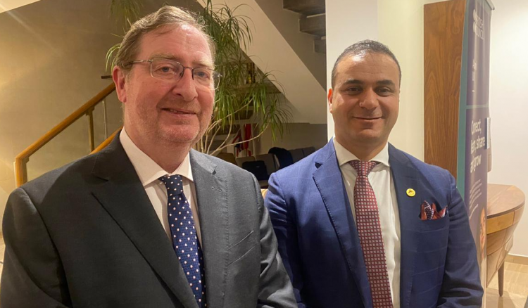 لبَّى نائب رئيس الجامعة الحديثة للإدارة والعُلوم البروفسور نائل علامي، دعوة سفير بريطانيا في لبنان هاميش كاول إلى دارَتِه، تُرافِقُه عميدة الجُودة في الجامعة الدُّكتورة إيمان رَبَح،  لِحُضور حَفل الإستقبال السَّنوي الخامس للخرّيجين الُّلبنانيين مِن جامعات المملكة المُتَّحِدة.