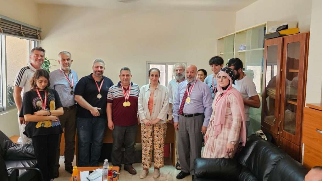 وهنّأت مديرة الكلية الدكتورة بادية مزبودي الفائزات والفائزين من أساتذة وطلاب، وتولّت مع المدرّب السيد تقليدهم الميداليات..