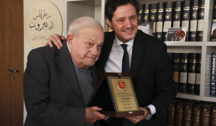 المكاري كرم الكاتب انطوان غندور وسلمه درعاً تكريمية تقديراً لعطاءاته في صنع تاريخ لبنان