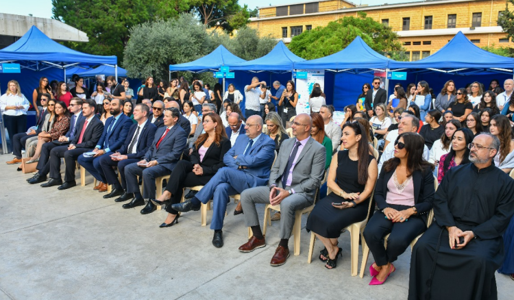 استُهلّ الافتتاح بكلمة ألقتها دورنيه جرمانوس رحّبت فيها باسم رئيس الجامعة الأب البروفسور جوزف مكرزل بالحضور من سفراء وممثلي الهيئات الدبلوماسية والثقافية والأكاديمية، مؤكدة أن الحدث يفتح أبواب العالم أمام طلاب الجامعة في منصّة تجمع الثقافات والأفكار والفرص تحت سقف واحد.