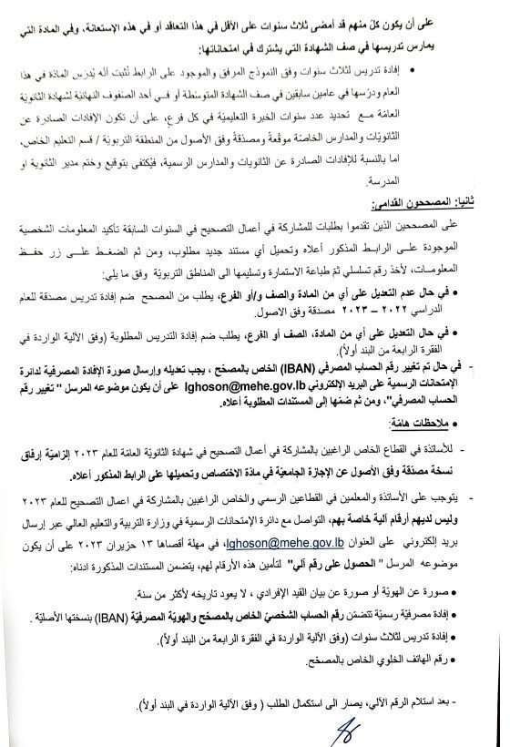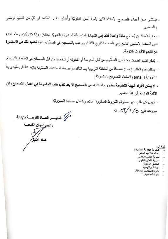 دعوة أفراد الهيئة التعليمية الراغبين بالمشاركة في أعمال تصحيح الامتحانات الرسمية للعام 2023 الإثنين 05 حزيران 2023 أفراد الهيئة التعليمية الامتحانات الرسمية وزارة التربية Share on TwitterTweet Share on LinkedIn Share Send email Mail Print Print