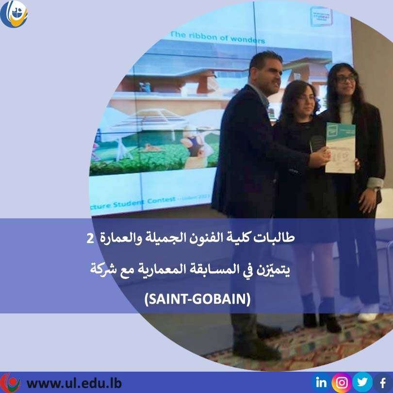 فازت مجموعة من طالبات سنة أولى ماستر/هندسة معمارية في كلية الفنون الجميلة والعمارة – الفرع الثاني/الجامعة اللبنانية في المسابقة المعمارية الدولية التي نظمتها شركة (Saint-Gobain) العالمية وخصصتها في عام 2023 لمدينة لشبونة البرتغالية.