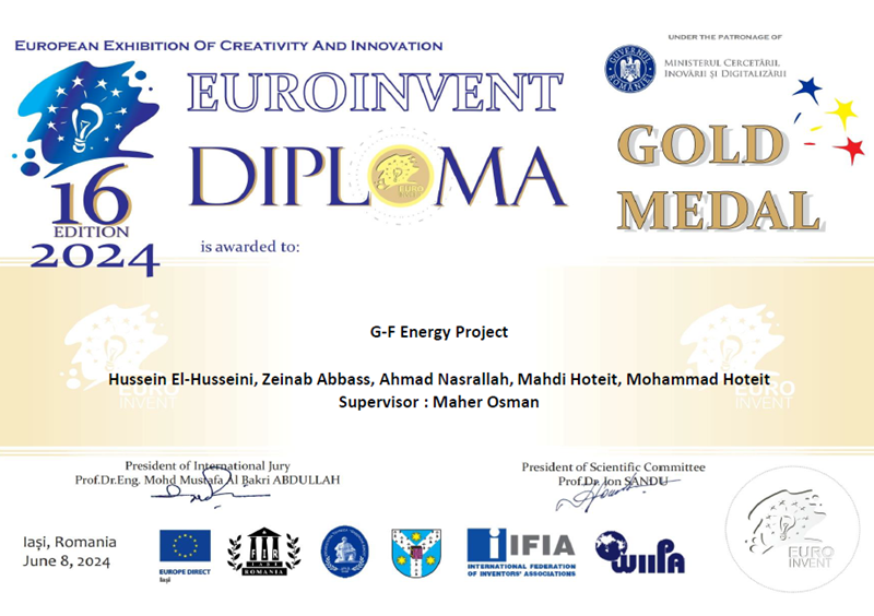 حقّق اختراع لبناني مبتكر نجاحاً باهراً في معرض أوروبا للاختراع Euroinvent 2024 الذي جرى بين 6 و8 حزيران 2024 في رومانيا، حيث حصد ميدالية ذهبية. هذا الحدث الدولي البارز شهد مشاركة واسعة من مخترعين ومبتكرين من مختلف أنحاء العالم، حيث تنافسوا على تقديم أفضل الحلول والابتكارات التقنية.