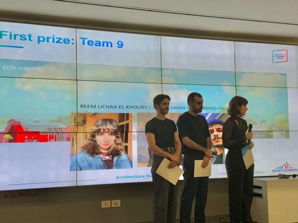 فازت كلية الفنون الجميلة والعمارة – الفرع الثاني في الجامعة اللبنانية بالجائزتين الأولى والثالثة في المسابقة الوطنية التي نظمتها شركة (Saint Gobain) العالمية لاختيار أفضل ثلاثة مشاريع لطلاب الهندسة المعمارية من جامعات لبنان.