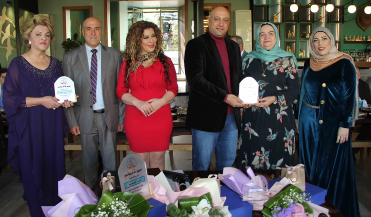 بعد ذلك، سلمت السن بمشاركة ممثل الحريري وصالح ولورا السن الدروع التكريمية للمحتفى بهن وباقات الورود والهدايا بالمناسبة.