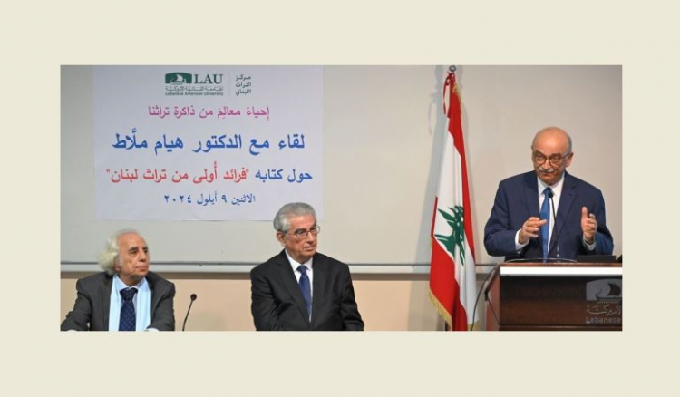 افتتح «مركز التراث اللبناني» في الجامعة اللبنانية الأميركية (LAU) موسمه الثقافي الجديد بلقاء مميز مع الدكتور هيام جورج ملَّاط، الذي قدَّم خلاله كتابه الجديد «فرائد أُولى من تراث لبنان». الكتاب الصادر حديثًا عن منشورات «المركز» يتناول أبرز الإنجازات والتراثيات اللبنانية التي تُطبع لأول مرة.
