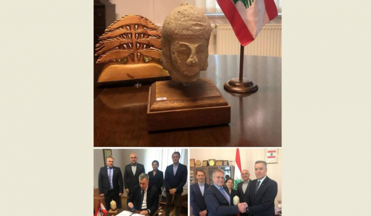 «تسلّم اليوم سفير لبنان لدى جمهورية المانيا الاتحادية الدكتور مصطفى أديب رأس أشمون الأثري، من رئيس مكتب الشرطة الجنائية – فرع الممتلكات الأثرية والفنية في ولاية بافاريا- السيد Christian Klein».