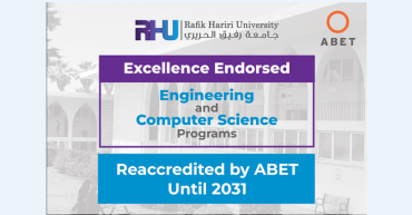 جامعة رفيق الحريري تحصل على إعادة الاعتماد الأكاديمي من ABET لبرامجها الهندسية وعلوم الحاسوب الجمعة 3 تشرين الأول 2025 أعلنت جامعة رفيق الحريري أن برنامج علوم الحاسوب وجميع برامج الهندسة السبعة، وهي هندسة الطب الحيوي، الهندسة المدنية، هندسة الكمبيوتر والاتصالات، الهندسة الكهربائية، الهندسة الميكانيكية، وهندسة الميكاترونكس، حصلت على إعادة الاعتماد الأكاديمي من هيئة ABET العالمية […]